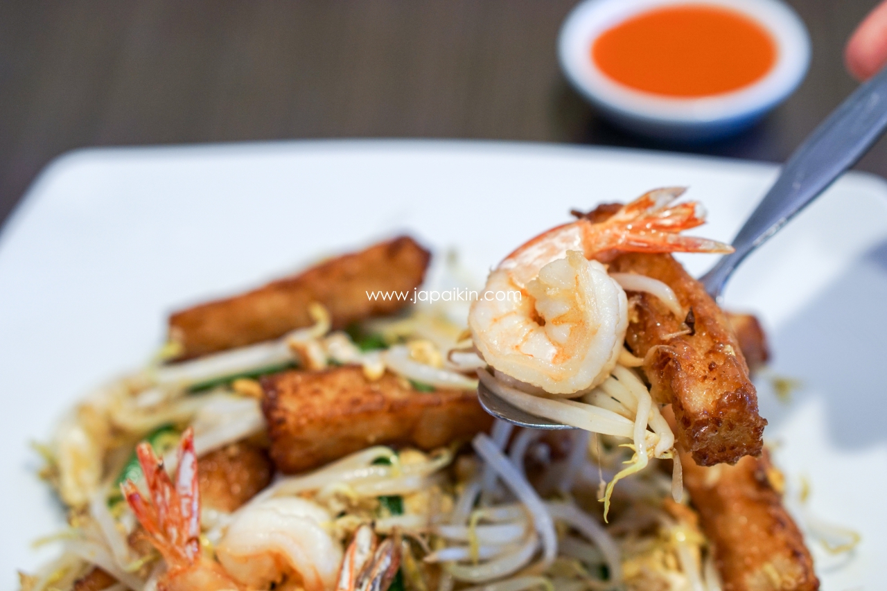 หอมกลิ่นกระทะบ้างเล็กน้อย อาจจะไม่มากเท่าร้านดังในเมือง เพราะทางสนามบินให้ทุกร้านใช้กระทะไฟฟ้านั่นเอง หนวดปลาหมึกชิ้นใหญ่ ไก่นุ่ม หอมกลิ่นไข่ไก่ บีบซอสพริกเพิ่มรสชาติ เจ๊นี่กินเพลินเลย
