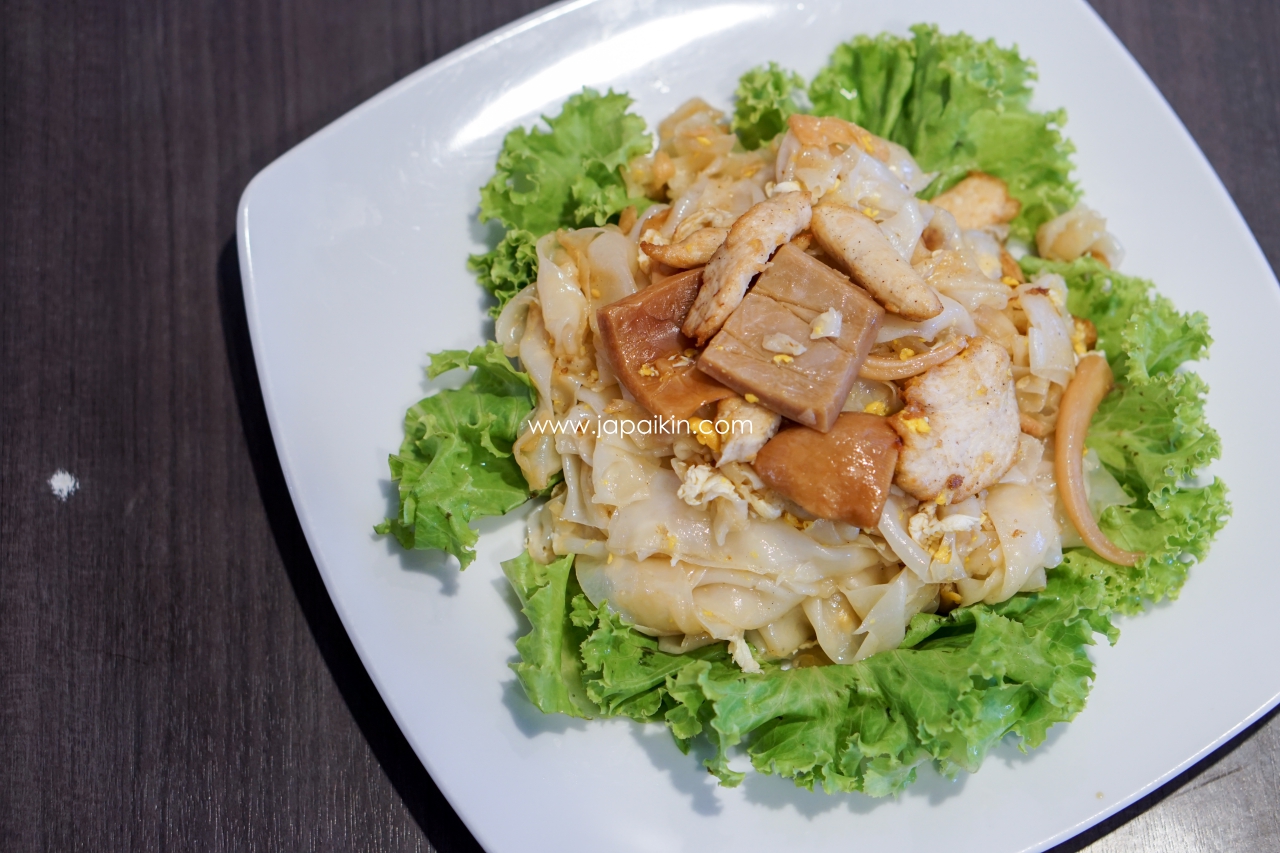 ก๋วยเตี๋ยวคั่วไก่ (Sauteed rice noodle with chicken and soaked squids premium) 185฿ – เมนูคุ้นเคยอีกอย่างของคนไทย ก๋วยเตี๋ยวเส้นใหญ่ ผัดกับไข่ เนื้อไก่ และหมึกดอง