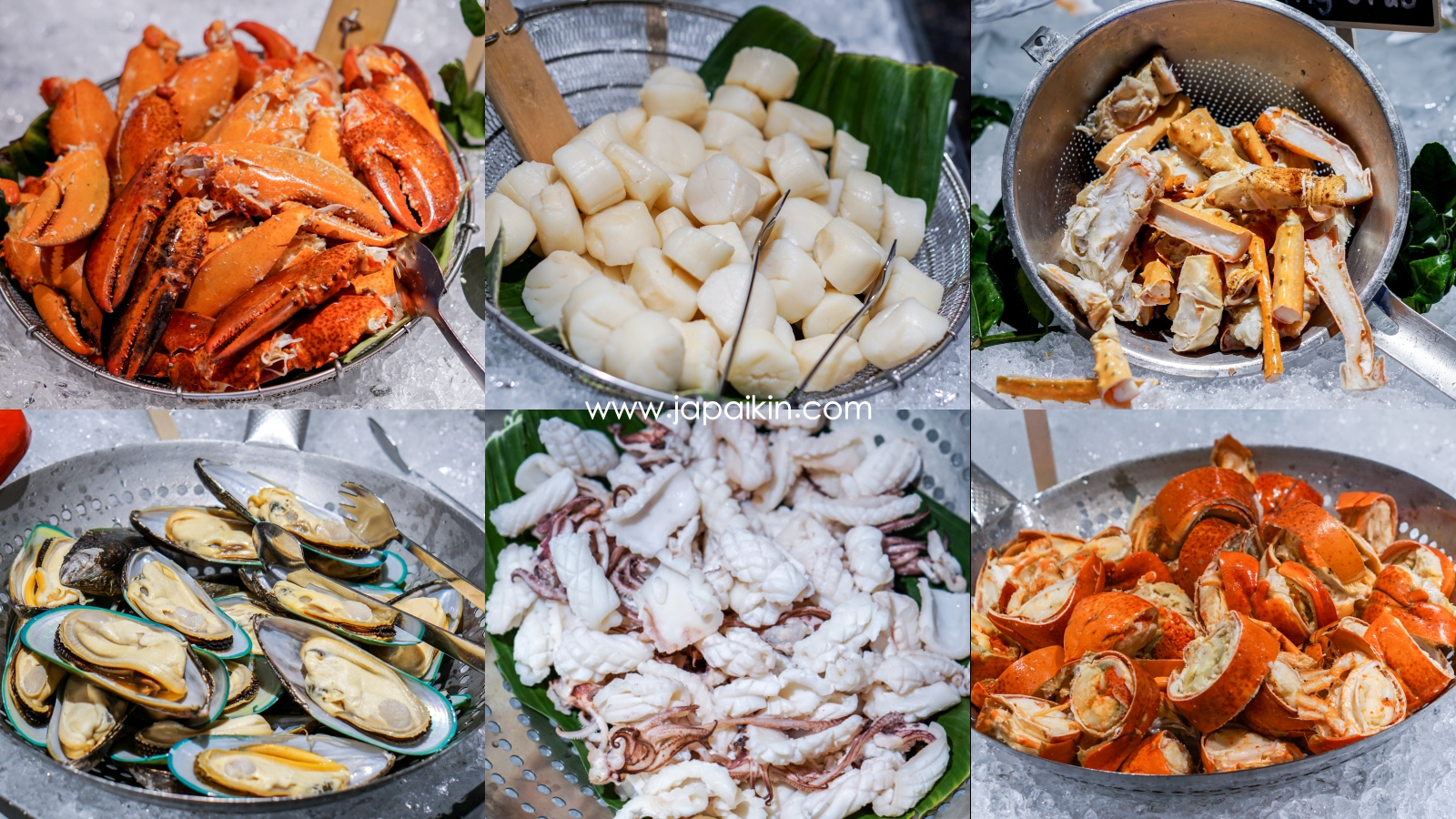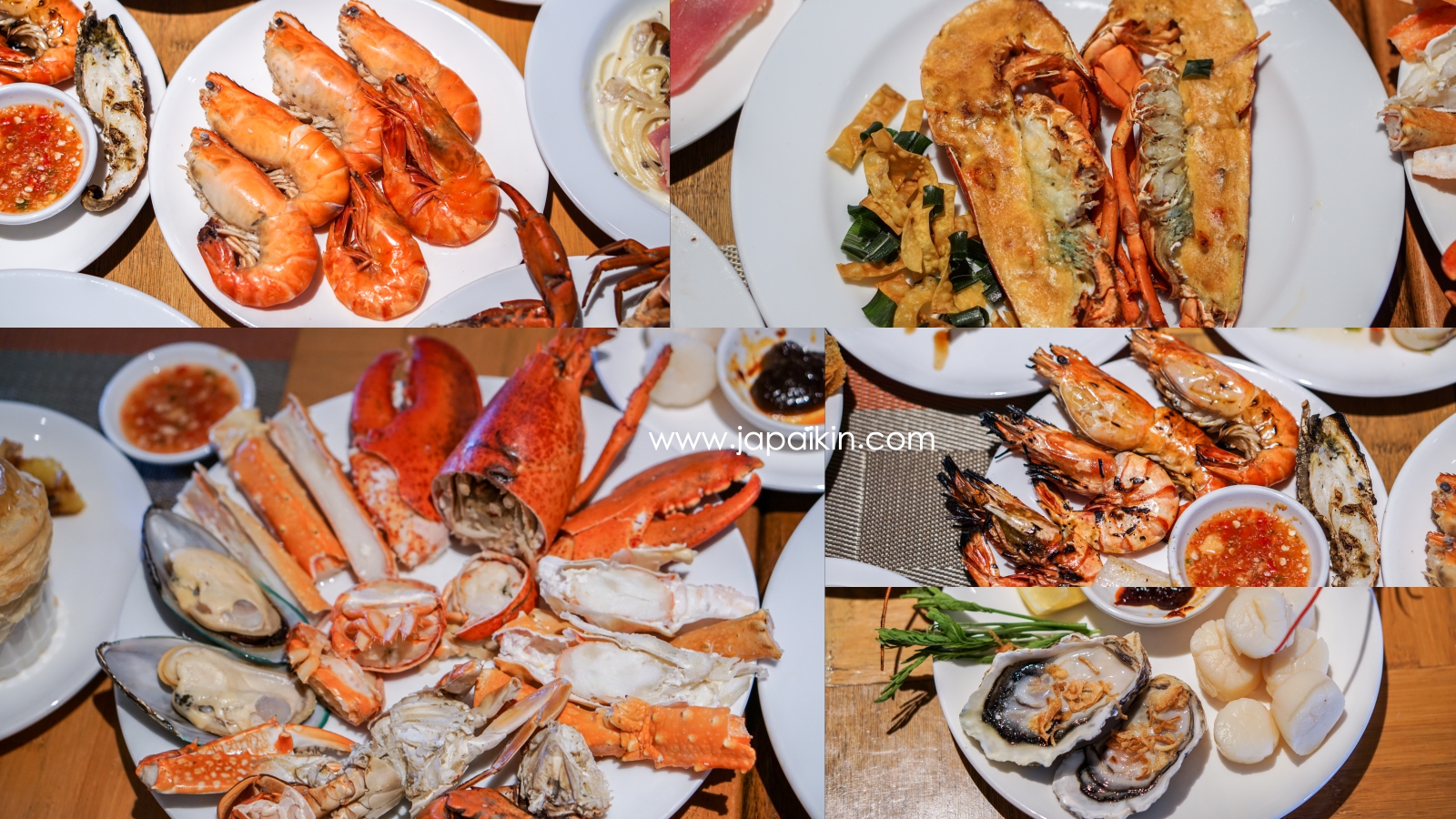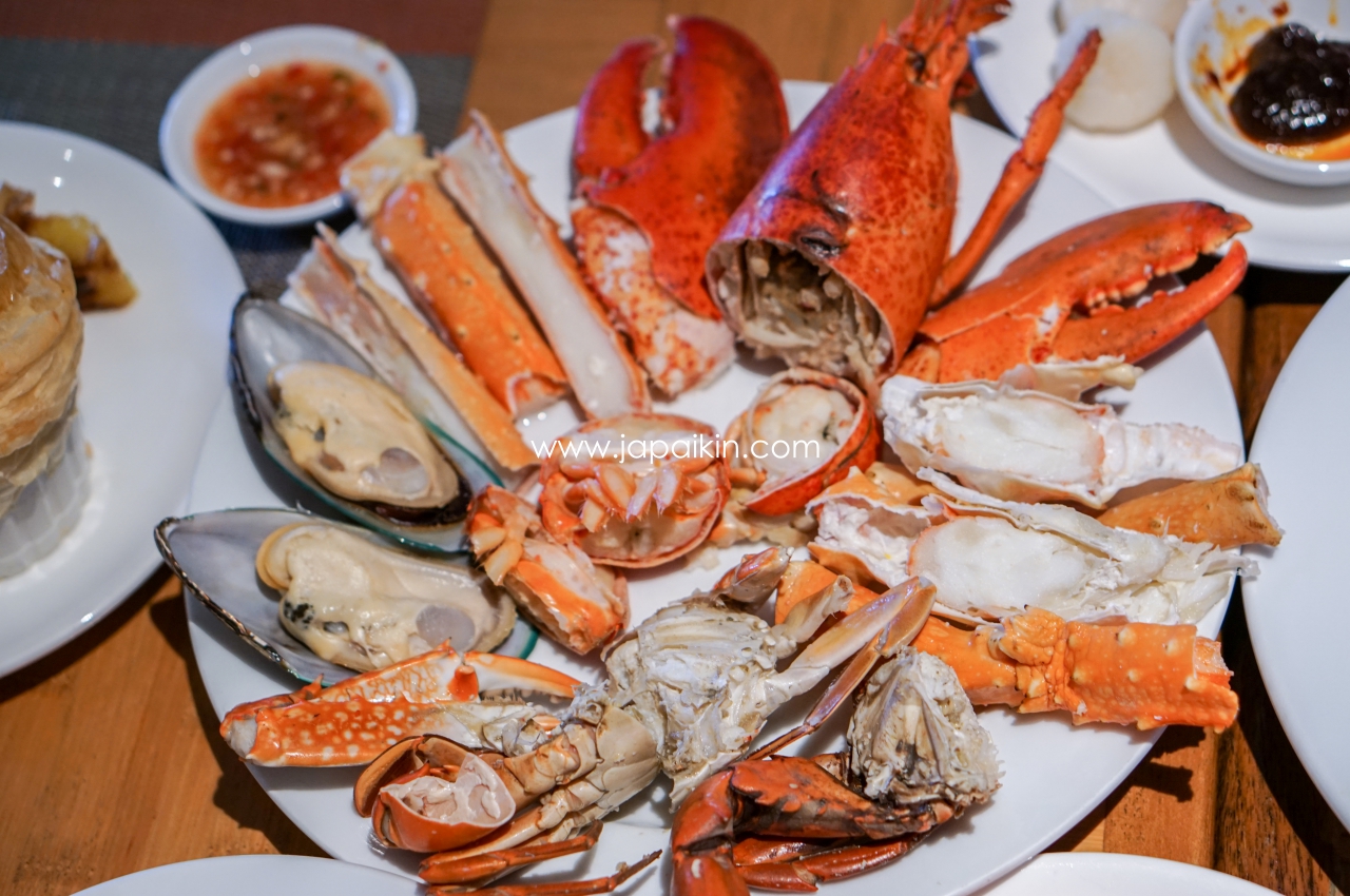 เซตแรกเบาเบา สังเกตได้ว่าของทะเลเยอะจริง แล้วก็เติมตลอด ไม่มีขาด วันที่เจ๊ไปรีวิวเหมือนมีแขกมาสัมมนากันที่โรงแรมด้วย อาหารถูกตักไปไวมั่กๆ แต่พนักงานก็มาเติม เช็คไลน์ตลอด ตรงนี้ขอชื่นชม (เอ้า ปรบมือ แปะๆ) แอบติอย่างเดียว คือ น้ำจิ้มซีฟู้ดยังไม่โดนใจ ออกไปทางเปรี้ยวเค็ม TT