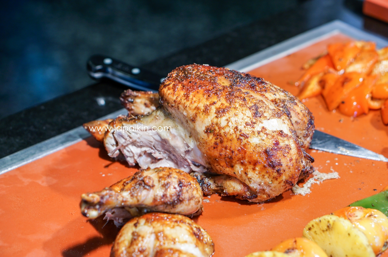 ไก่อบสมุนไพร เนื้อไก่มีมันแทรกมานิดๆ หอมกลิ่นเครื่องเทศ