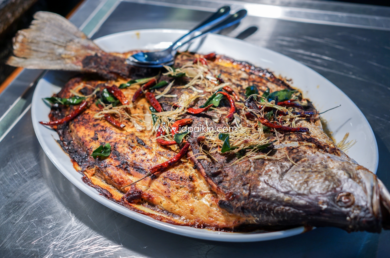 แต่ถ้าใครเป็นสายเฮลตี้ รักสุขภาพ ก็หมุนตัวกลับมามีปลากะพงอบสมุนไพรนอนรออยู่เลย ฮ่าๆ