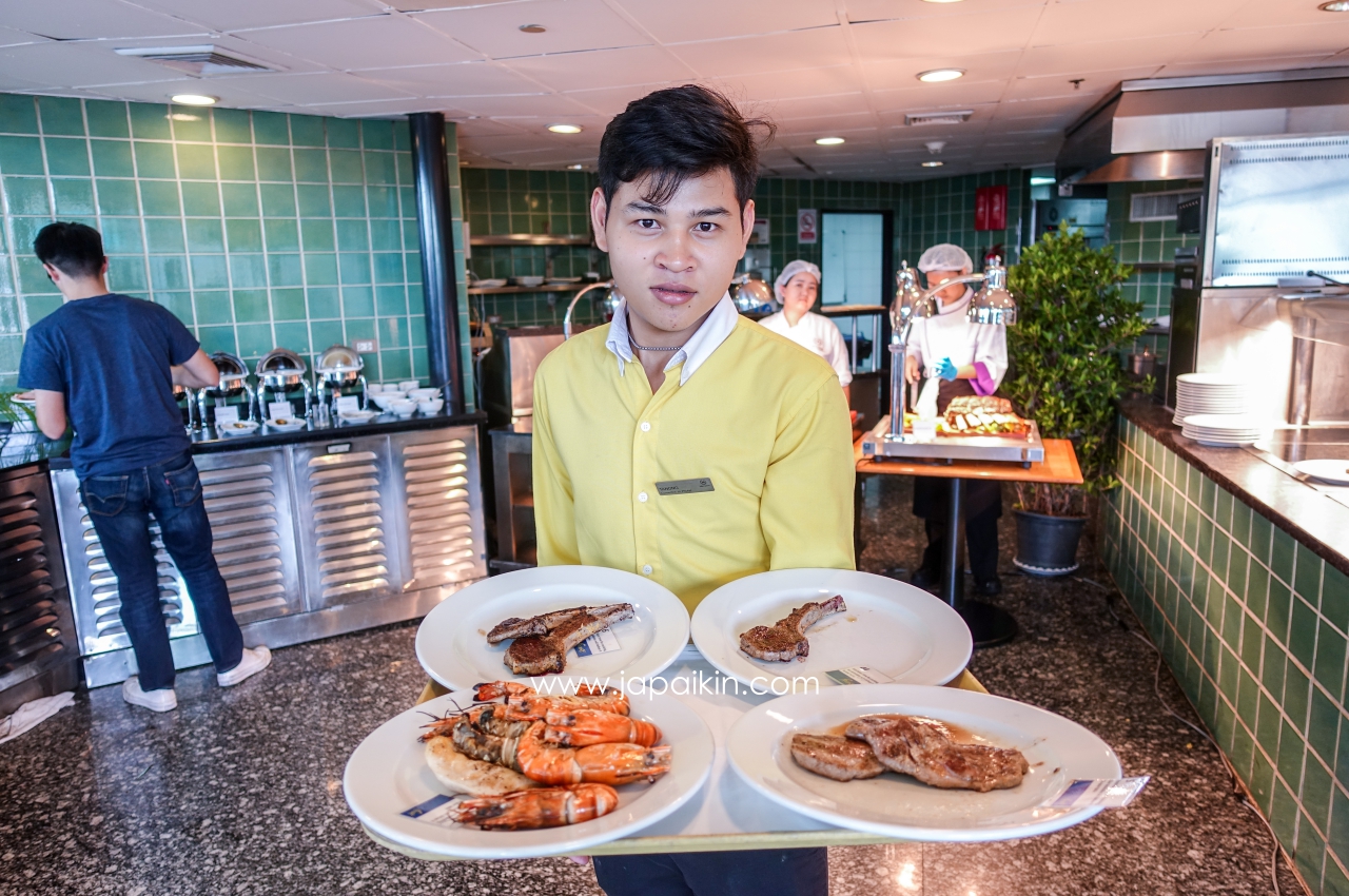 เมนูปิ้งย่าง รวมถึงสเต็กถ้าเลือกเนื้อสัตว์ใส่จานแล้วอย่าลืมแนบป้ายแท็กให้เชฟด้วย เพราะเวลาที่เชฟปรุงเสร็จแล้ว พนักงานสุดสวยสุดหล่อ ก็จะนำมาเสิร์ฟให้ถึงโต๊ะเลยล่ะ สบายจริงเรา 55555