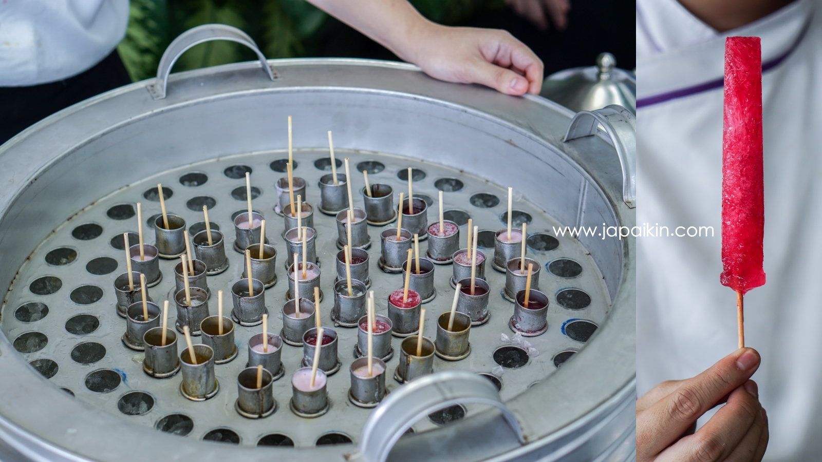 และไอศกรีมหลอด! นี่มันไอเท็มในตำนาน หวานเย็นชื่นใจ มีหลายรส เช่น น้ำแดง ส้ม โยเกิร์ต ใครจะขอพี่เขาหมุนถังไอศกรีมก็ลองดูได้เลย