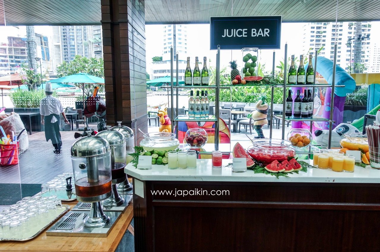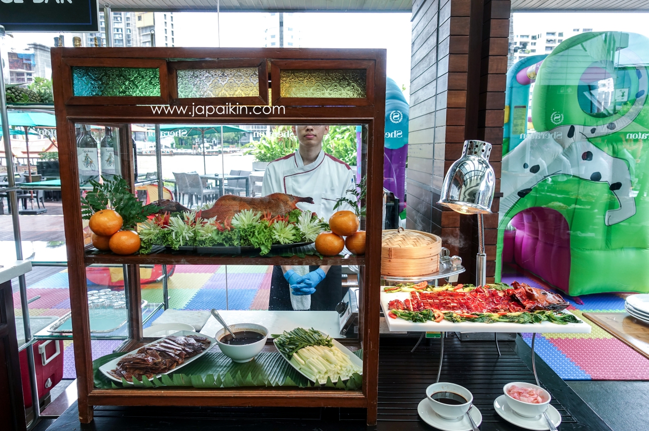 ไลน์อาหารก่อนประตูที่จะออกไปท่าน้ำของโรงแรม